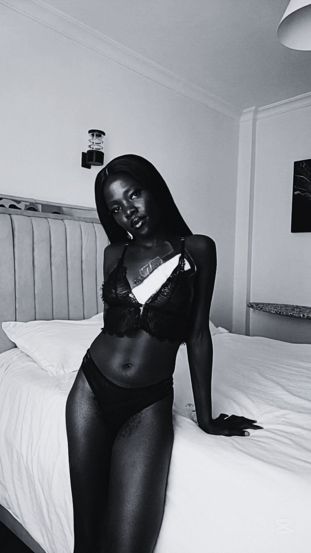 I'm Dahlia, your petite 23-year-old Kenyan fantasy: 152 cm of slim, toned curves, silky dark skin, hypnotic brown eyes, and signature microlocs you'll love running your fingers through. Exotic, affectionate, playful, and 100% focused on creating electric, no-rush chemistry.