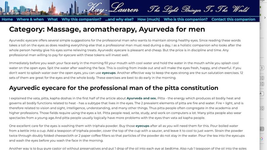I've written about many aspects of massage on the why else page of my official site. If your intuition tells you that this ad is different and if you're an executive or professional man over 45, I invite you to start a conversation on