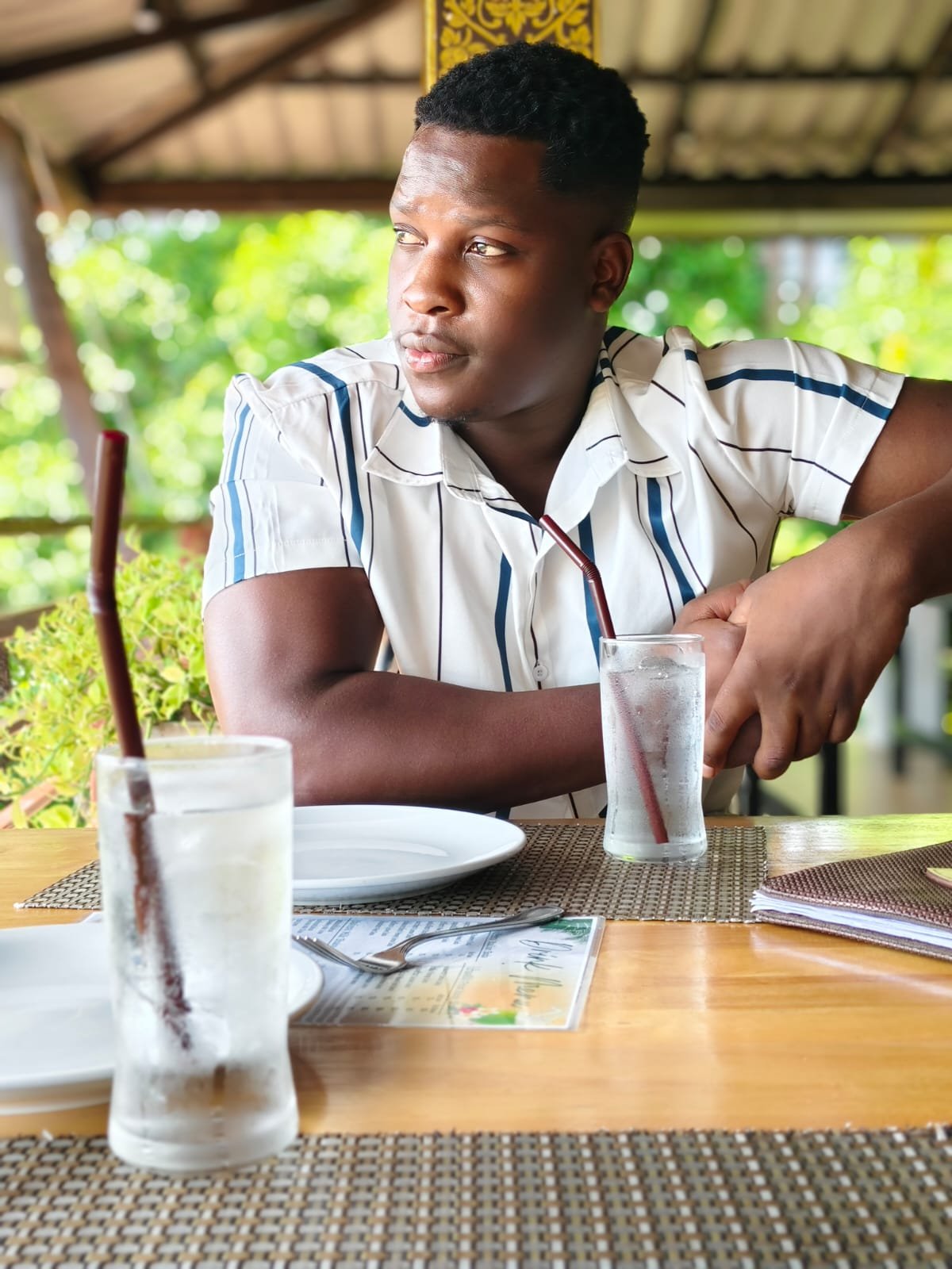 27 years old, African, with a muscular, athletic body and confident energy.