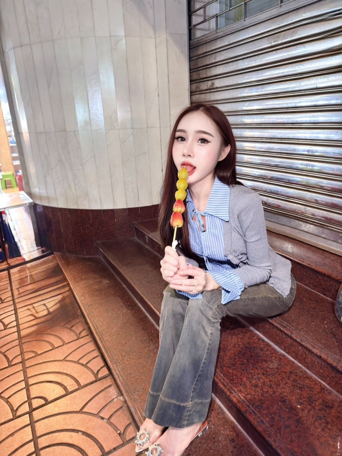 170cm tall, 53 kg. My skin is white and clean, no hair, no spots. I have